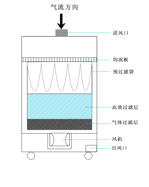 高效過濾器淨化顆粒直接可達0.3微米,淨化效率達99.99%。