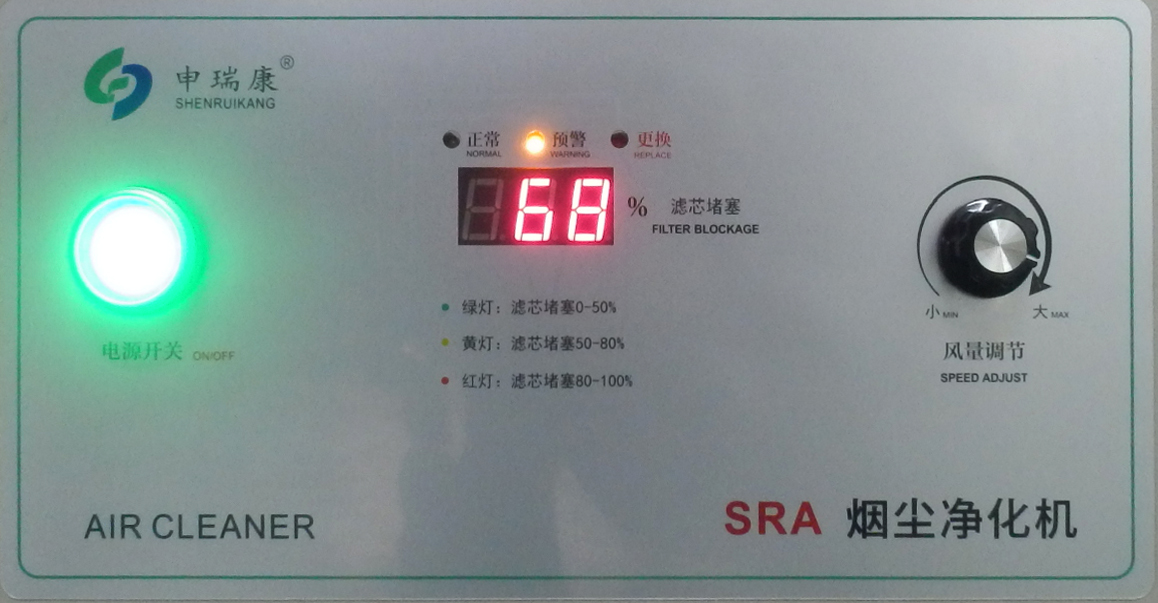我公司研發的專利產品 濾芯堵塞狀態實時顯示儀針對以上不合理之狀況,有效的解決了用戶不能實時了解煙塵淨化濾芯堵塞的實際狀況,可以直觀的看到濾芯堵塞的百分比,工作情況如下: 當數碼管顯示在 0%-50%之間時,綠燈亮,濾芯正常; 當數碼管顯示在 51%-79%之間時,黃燈亮;濾芯輕微至中度堵塞; 當數碼管顯示在 80%-100%之間時,紅燈亮,濾芯嚴重堵塞,需要更換濾芯。